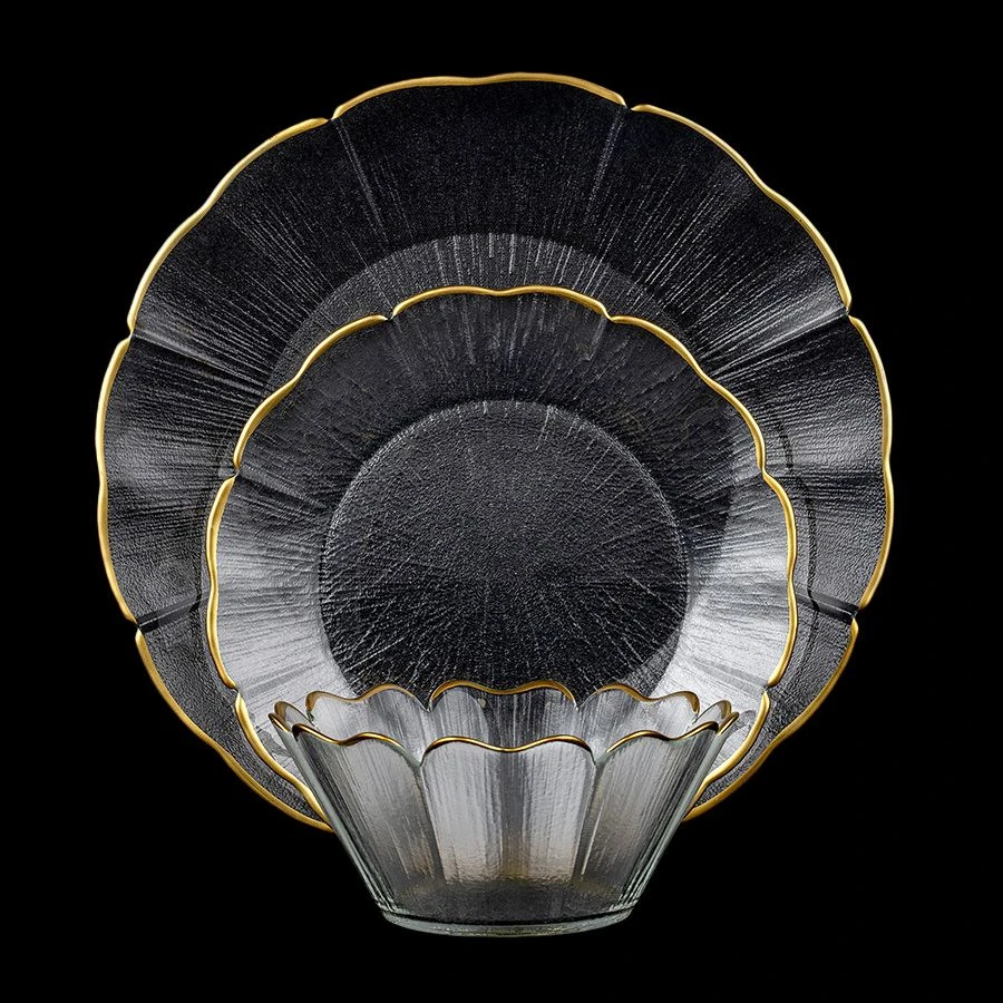 סט צלחות 18 חלקים זכוכית LOTUS GOLD שקוף