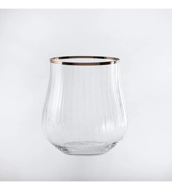סט 6 כוס שתייה קריסטל בוהמיה פס זהב אופטיק פסים 350 מ''ל.