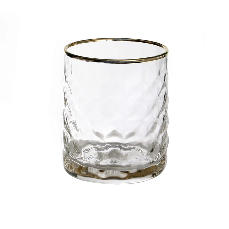סט 6 כוסות שתייה זכוכית רקועה פס זהב 230 מ''ל.