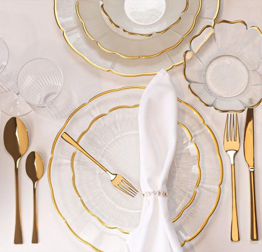 סט צלחות 18 חלקים זכוכית LOTUS GOLD שקוף