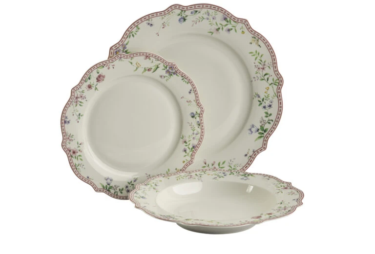 סט צלחות יוקרתי מפורצלן בעיצוב פרחים וורדים בגימור וורוד