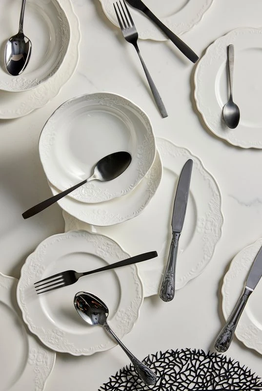 הסט המושלם לשדרוג כל ארוחה – סט אוכל פורצלן 18 חלקים NEW BON CHINA בצבע לבן קלאסי בגימור עיטור יוקרתי, שמביא עימו יוקרה ואלגנטיות. הסט מיועד לכל אירוח – מארוחות משפחתיות ועד חגיגות מיוחדות – ומבטיח להוסיף שיק וסטייל לשולחן.